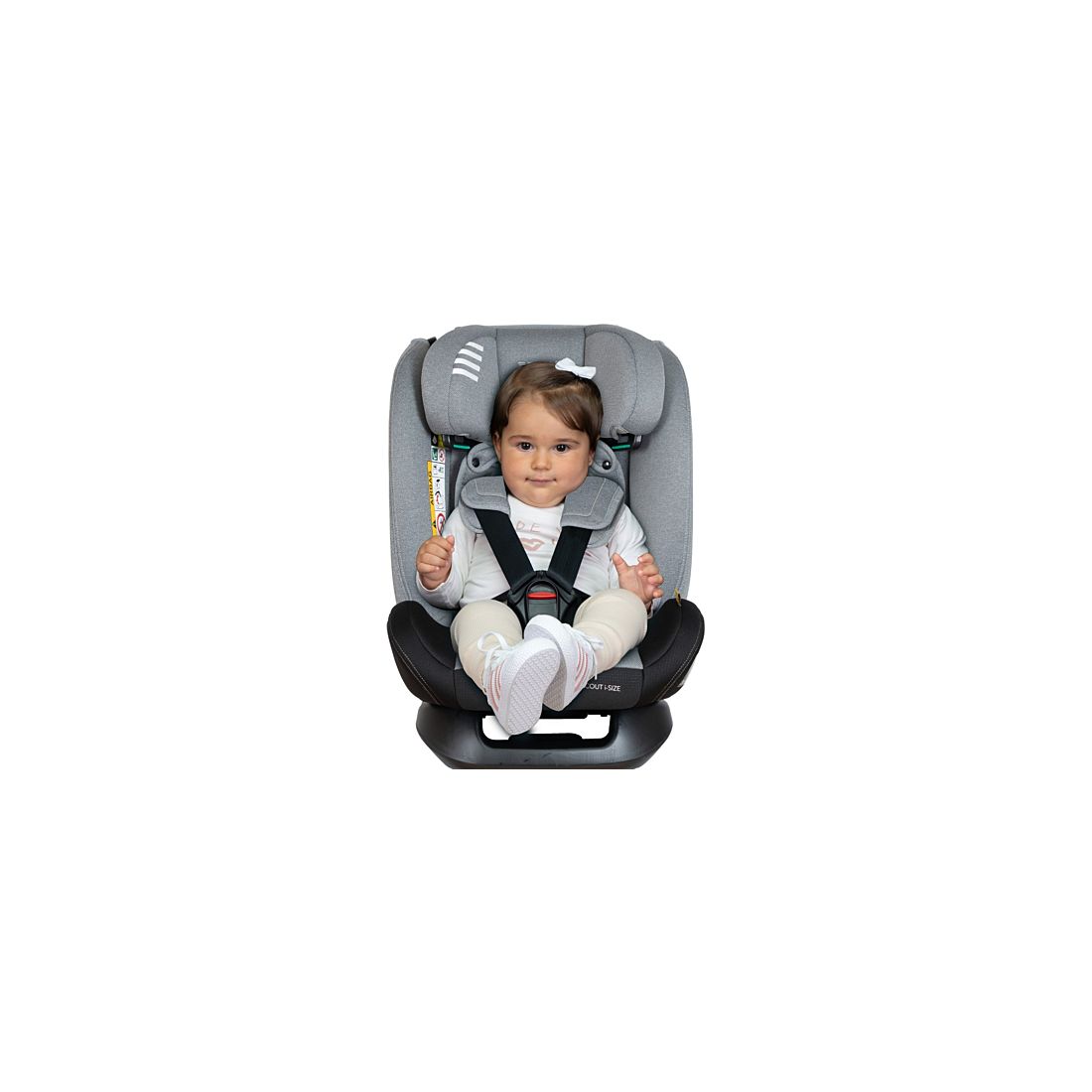 En phase d’utilisation de 100 à 150 cm, le harnais peut être rangé facilement dans un compartiment intégré, sans avoir à le démonter. Le siège inclut également un réducteur avec coussin compensateur d’angle en mousse à mémoire de forme, permettant à bébé de voyager confortablement en position allongée dès les premières semaines.