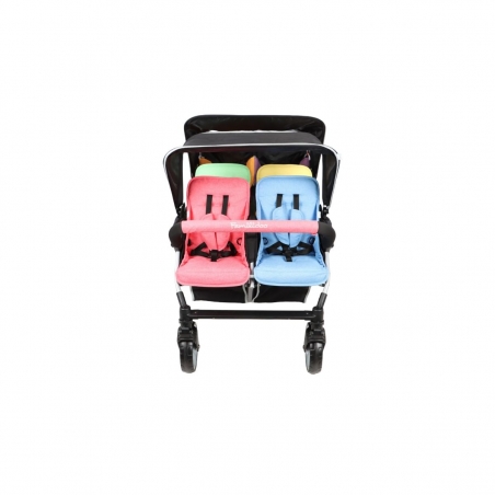 La poussette Lidoo Bus BB propose 2 sièges arrière adaptés dès la naissance et 4 sièges avant pour les enfants de plus de 6 mois.