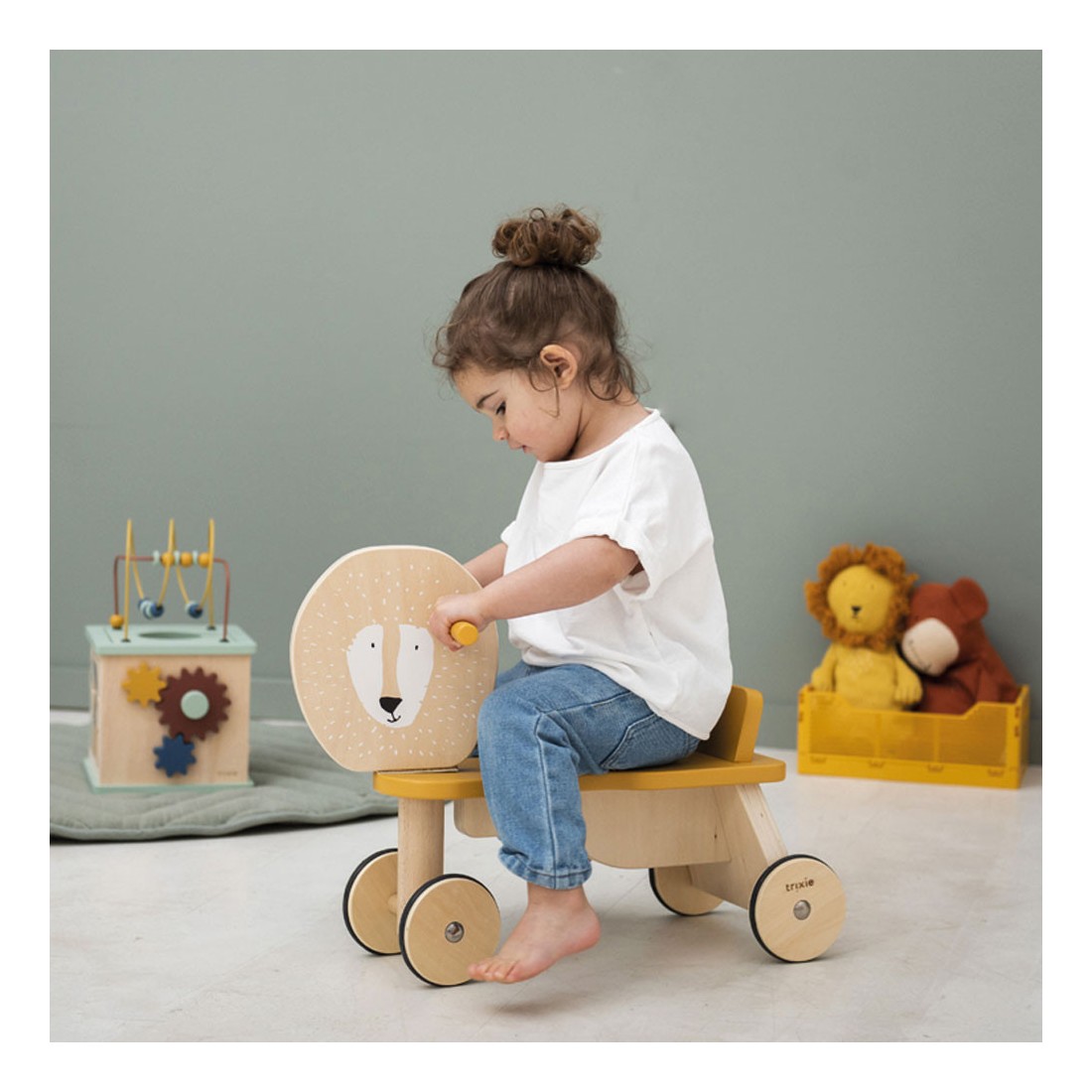 Fabriqué en bois massif certifié FSC©, il dispose de roues en bois avec une fine bande de caoutchouc assurant une bonne adhérence au sol. Cette draisienne à l’effigie du petit lion Trixie permettra à votre enfant de développer motricité, équilibre et autonomie dès 1 an.