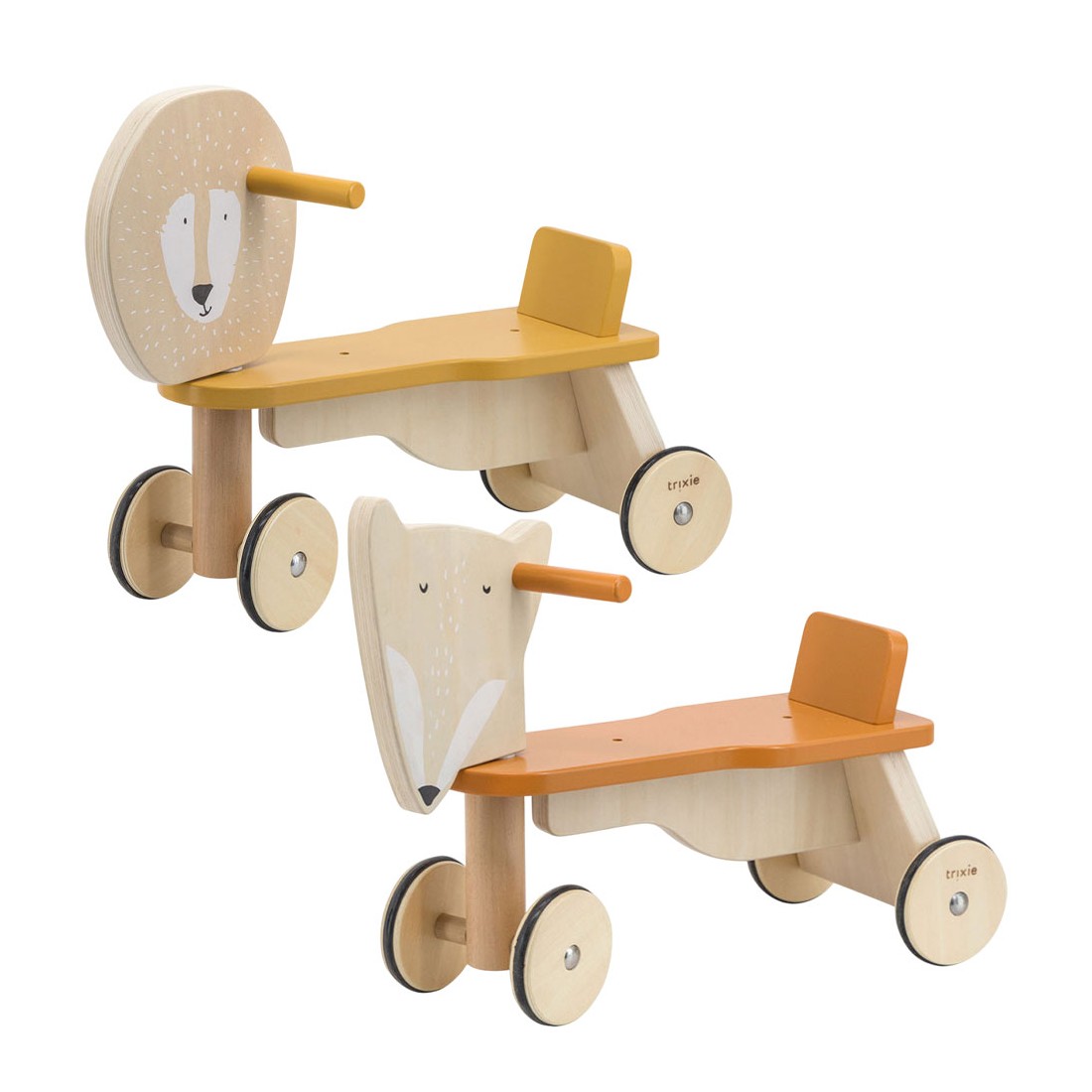 Fabriqués en bois massif certifié FSC©, ils disposent de roues en bois avec une fine bande de caoutchouc assurant une bonne adhérence au sol. Ces draisiennes, l’une à l’effigie du petit lion et l’autre du petit renard Trixie, permettront à vos enfants de développer motricité, équilibre et autonomie dès 1 an.