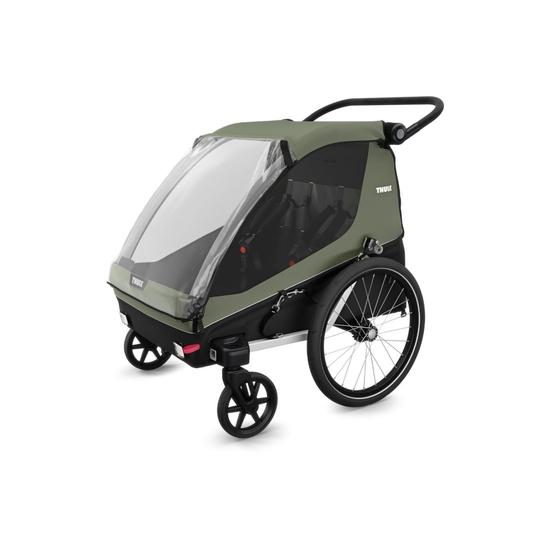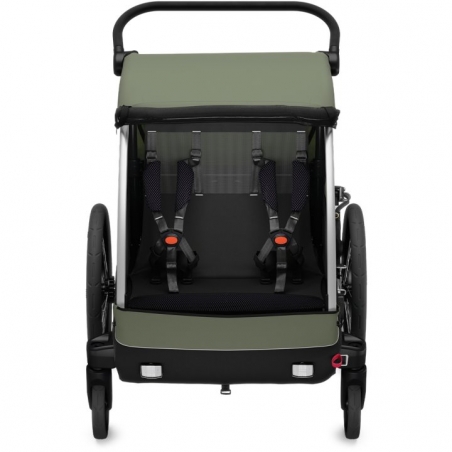 La Thule Courier est la remorque vélo idéale pour les parents dynamiques à la recherche de flexibilité, sécurité et confort. Conçue pour transporter 1 ou 2 enfants (jusqu’à 2 x 22 kg), elle se transforme facilement en poussette compacte ou en remorque cargo, vous accompagnant aussi bien pour les trajets quotidiens que pour les escapades du week-end.