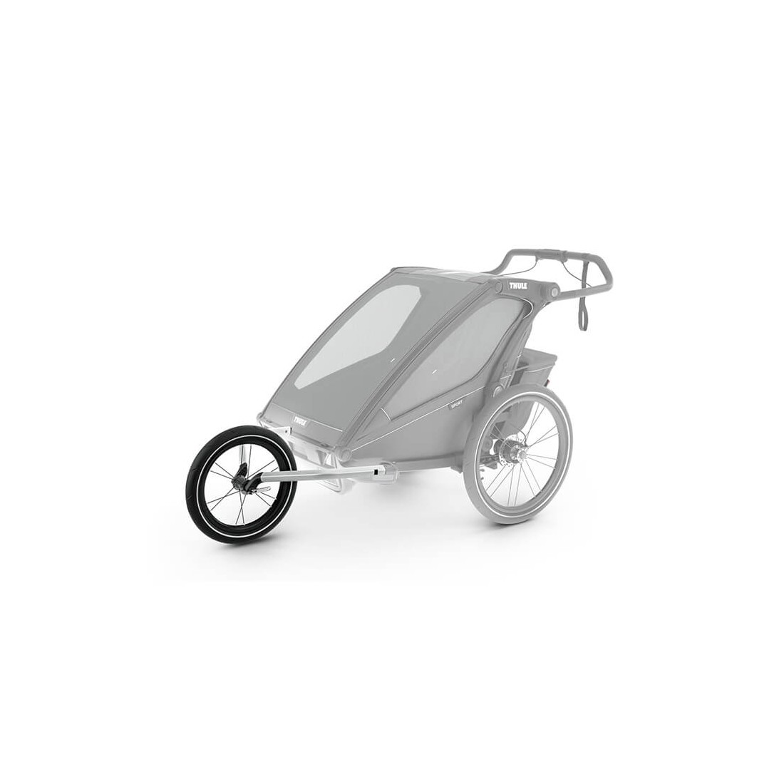 Transformez, en quelques mouvements, votre remorque à vélo biplace en une poussette de jogging grâce au kit de jogging Double pour chariot Thule.